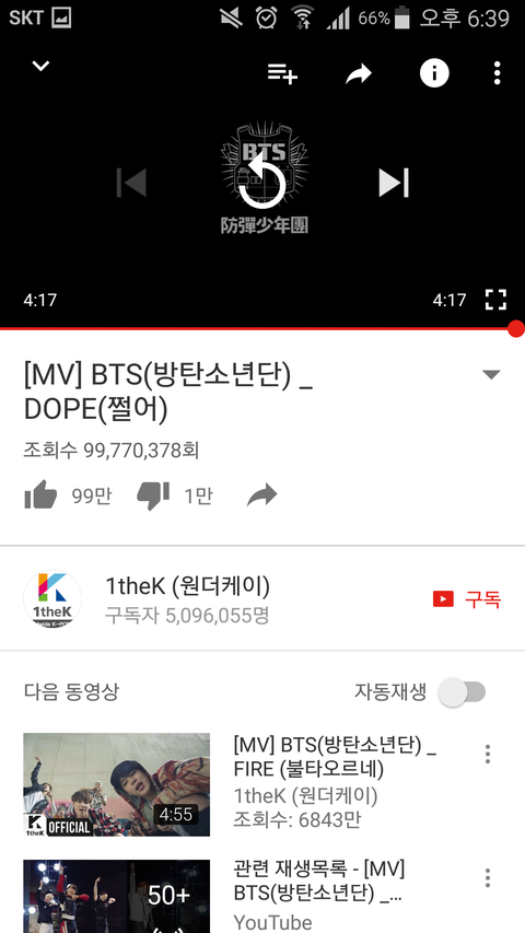 스밍 뮤스하고있는데 우연히 좋아요수보니까 곧 있으면 100만넘을거같더라고 쩔어는 1년전 노래여도 피땀눈물은 나온지 며칠안됐는데 98만이면 대단하지않아?