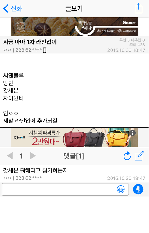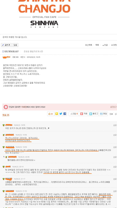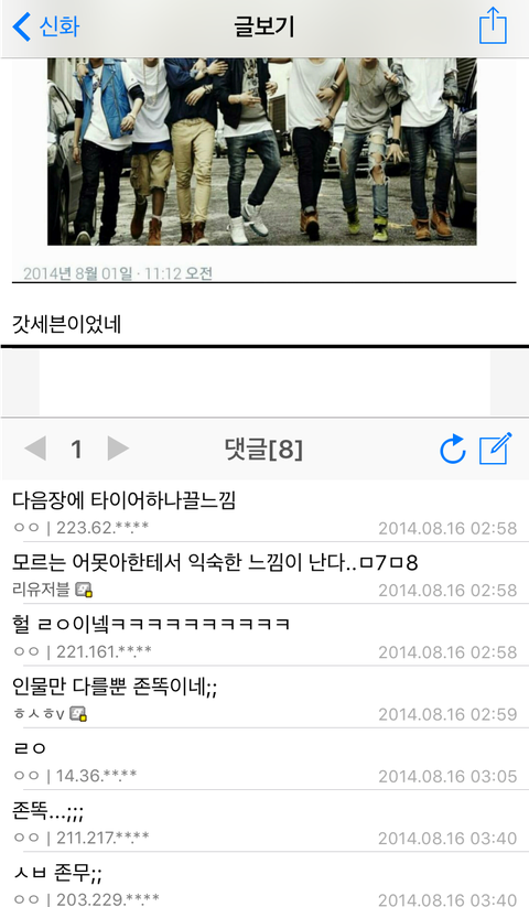 디시갤에서 신화팬들이 타 아이돌을 깜.