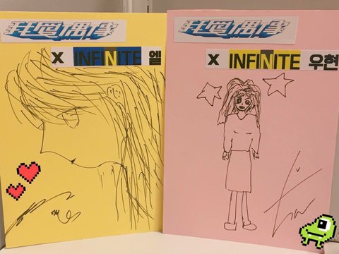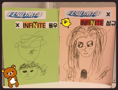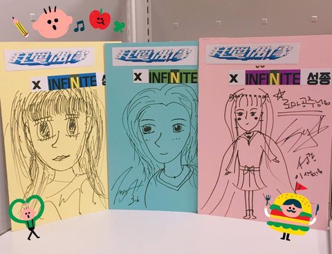 호워니는 원래 좀 그리니깐..예전에 그린 인스피릿이랑 비슷.이쁘고 귀여운 여자?? 덩우랑 성규는..글씨체랑 비슷?^^;;..와중에 성규 엑스표 뭐야.? ㅋㅋ 동우는 여자면 되는거야?? ㅋ .우혀니 슴가표현한거 보고 빵~ㅋ 그ㄹ래머 원하나? ㅎㅎ 묭수는 분위기 본다더니 분위기 있는 여자?? ..성열이는 본인눈도 크면서 여친 눈 더 커. ㅋ 순정만화타입.ㅎ.. 성종이 로마공주 모야?ㅋㅋ..아..진짜 남자들이 여자그림 그리기 어려울텐데 모두들 개성이 넘치네~ ㅋ