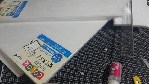 준비물은 칼, 30cm자, 다이소표 폼보드, 시침핀, 본드.