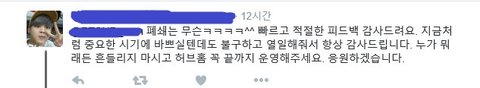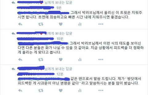 어떤 한 아미?가 방11닷이 올린 피드백 글에 저렇게 멘션을 달았어 그런데 나만 그런건지 모르겠는데, 보기가 좀 그렇더라고