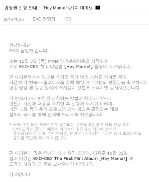 EXO-CBX 공식 홈페이지 오픈 안내 & 방청권 신청 안내 - ‘Hey Mama!’(헤이 마마!) #CBX #백현