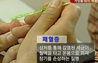 화요일 심지어 회사까지 조퇴를 하고 집에 가서 끙끙 앓았습니다.그러던 중 밤에 열이 42도까지 오르고 혈압은 70-40까지 떨어져 기절을 하게 되었고 혼수상태로 119를 통해 응급실에 실려가게 되었습니다.그렇게 저는 중환자실에서 3일을 보냈고 일반병실에서 4일을 보냈습니다.퇴원을 했지만 저는 아직도 항생제를 먹고 있고 아직도 1주일에 한 번씩 감염내과 통원치료를 하고 있습니다.오늘도 대학병원 가서 CT를 촬영하고 왔습니다.병원측에서 다른 사람이면 죽었을 것인데, 젊으니 살아났다고 하더군요. (저는 32살의 여성입니다.)