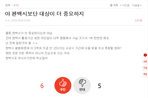 이거인듯 니 말대로 첸백시도 유닛이기 전에 엑소다 엑소 활동을 방해하려는 목적으로 없는 얘기 지어내지는 마 대상이 제일 중요한거 누가 모르냐?