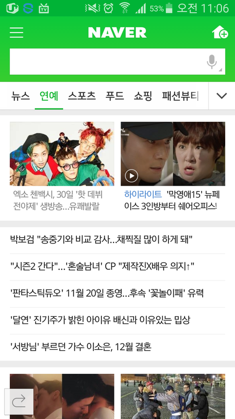네이버 메인에 첸백시 기사