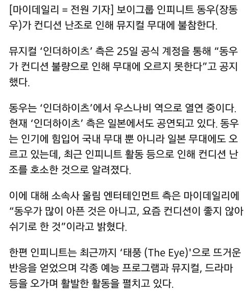 불참 입장 밝혔네. 기사로는 크게 걱정할 정도는 아닌거 같긴한대 빨리 나았으면ㅠㅜ