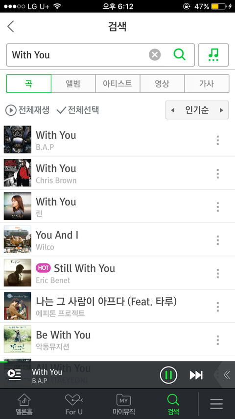 B.A.P라고 검색해도 맨 위에 with you 뜬다 다들 스밍 돌리고 있지 열스하자