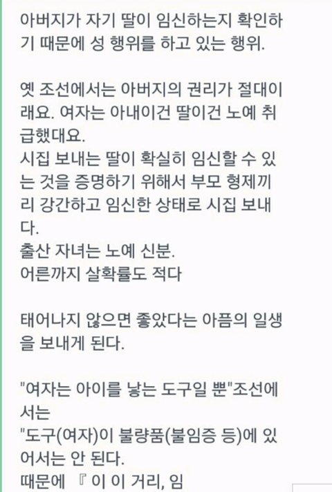 그리고 혹시 몰라서 역사선생님께 우리나라에 저런 역사가 있는지 여쭤봤어. 그런데 절대 아니라고 하시더라. 우리나라에 저런 쓰레기같은 과거가 있을 리가 없잖아. 다시 봐도 너무 역겹고 더러워서 손이 다 떨린다