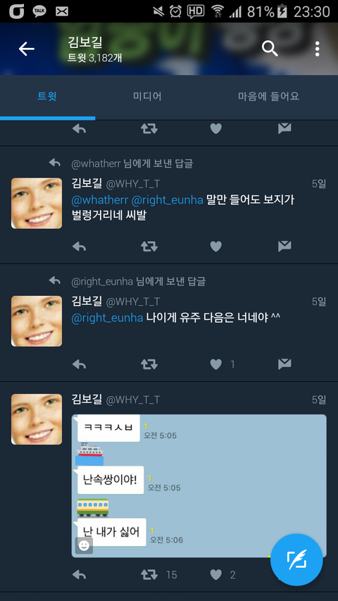 밑으로 쫌만 내리는데 다 이런말투고 탐라도 섹드립 오짐