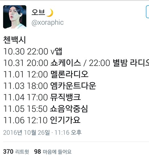 첸백시 스케줄업뎃@@@