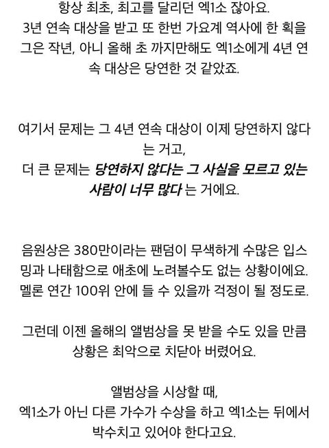 380만의 별 엑소가 대상탈수 있게 더 열심히 하자