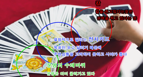 카드 배열법으로 과거,현재,미래 가 나오는데