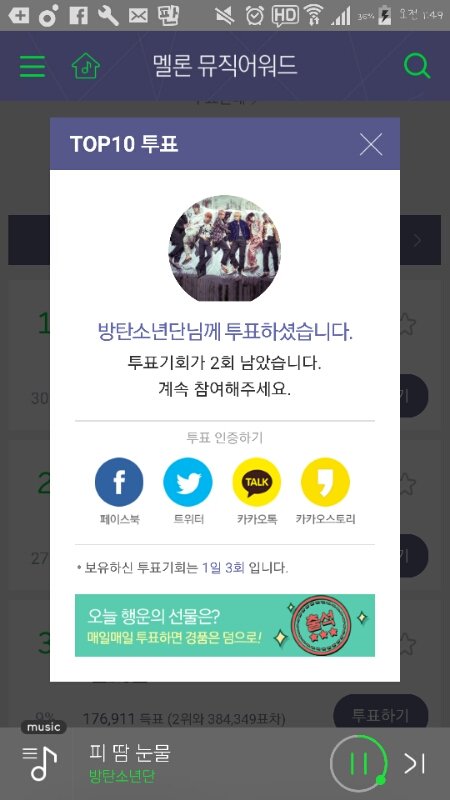 ++)내가수가 탑텐에 없어서 방탄투표해쏘