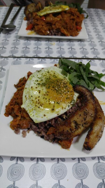 ㅎㅎ이날은 귀찮나서 반찬이 없네요ㅎㅎ신김치에 설탕좀뿌리고 고춧가루뿌려 볶아주고 마지막에 참기름 깨해서 김치덮밥하구요, 항정살 허브솔트뿌려서 빠삭 꾸워서 후라이 올려 먹었어요!ㅎㅎ깻잎잘게 썰어서 함께먹으면 2배로 맛있어요!