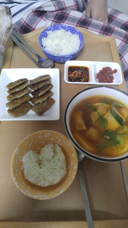 이날도 간단했네요...ㅎㅎㅎ떡갈비 굽구요, 오뎅탕에 고춧가루 풀어 얼큰하게해서 먹었어요!