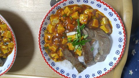 ㅎㅎ요건 두부된장국 해먹고 남은 두부로 마파두부하구요, 고기가 빠지면 아쉬워서 호주산 부채살 구워서 함께했어요! 소고기는 언제나 진리에요!