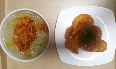 김치국수에 칠리새우! 김치국수는 여름에 마트에파는 냉면육수사다가 냉동실에 얼려놓았다가요! 전자렌지 3분정도 돌려 반만해동시켜주면 살얼음지게 해서 먹으면 좋아요. 김치는 열무김치가 제일 맛있기는 한데, 좀 익은김치에 고춧가루랑 참기름 깨 추가해서 버무려주고 국수삶아 육수랑 올려먹으면 꿀맛입니다!
