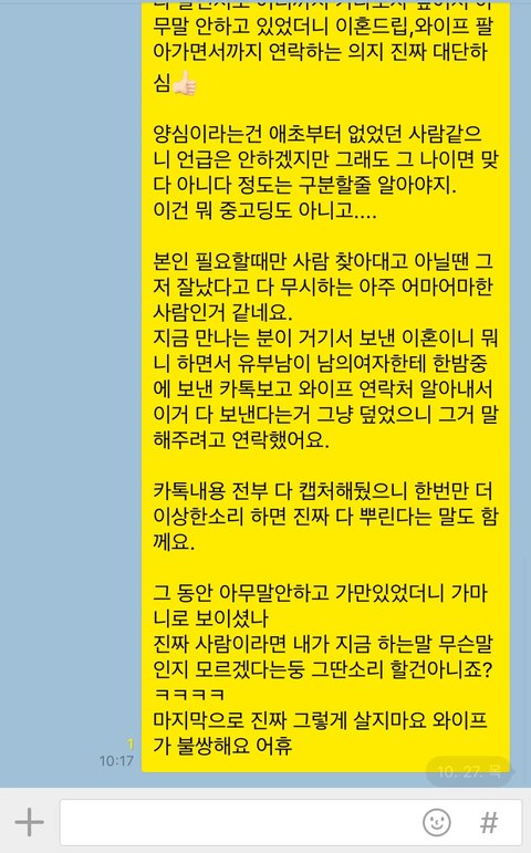 여기서 계속 연락오면 진짜 와이프한테 연락할생각이에요ㅋ