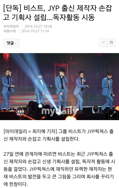 비스트 제왑출신제작자와 손잡고 기획사설립