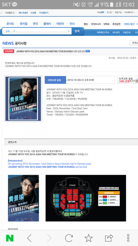 한국 팬미팅이라면서 장소도 제대로 안 써 있고 중국어, 영어로만 안내하고 있음 ㅋㅋㅋㅋ