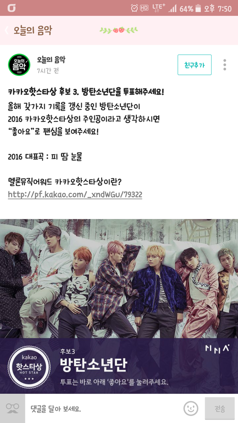 ㅋ톡핫스타상 투표도 있어! 좋아요>>>