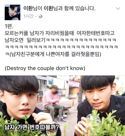 1. 페북스타 이X이 남자가 없는 사이 커플한테 가서 여자 번호를 땀