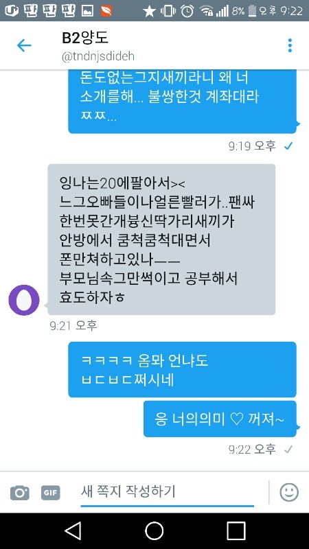 나 옾챗애인데 타돌 깐 캡처본은 없음