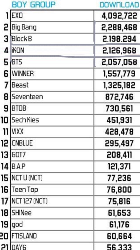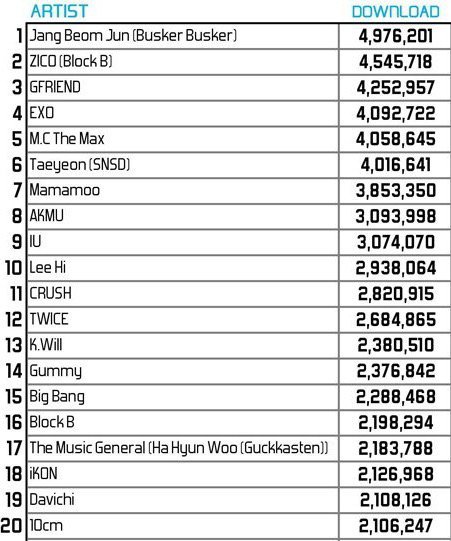 2016 남돌스트리밍.다운로드.누적다운로드순위