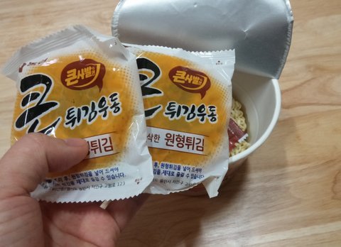 배고파서 편의점 갔더니 신상 큰튀김우동 큰김치