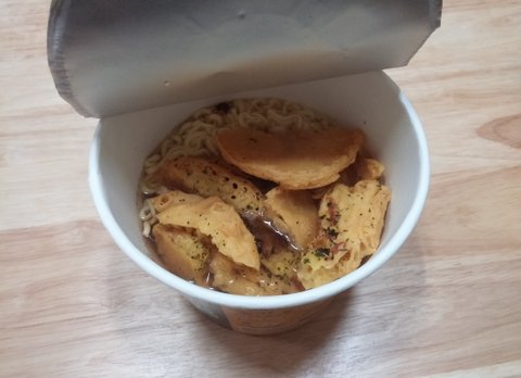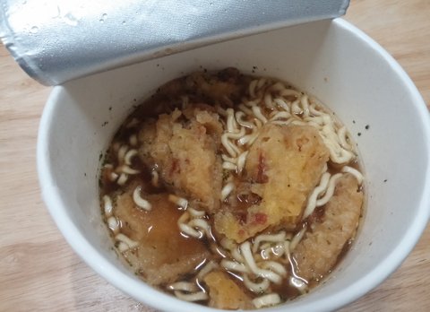 면을 익힌 후, 2개의 튀김을 투척한 부분입니다 크