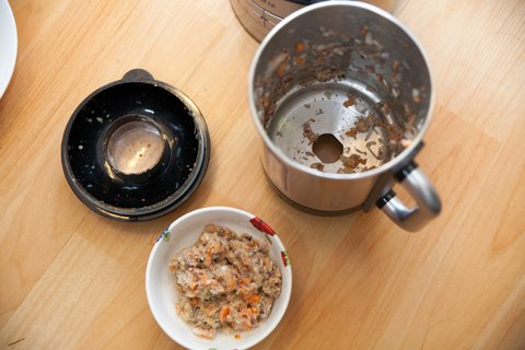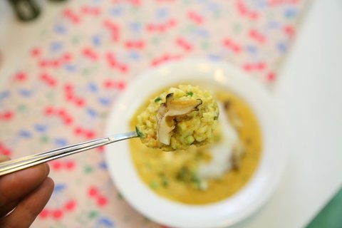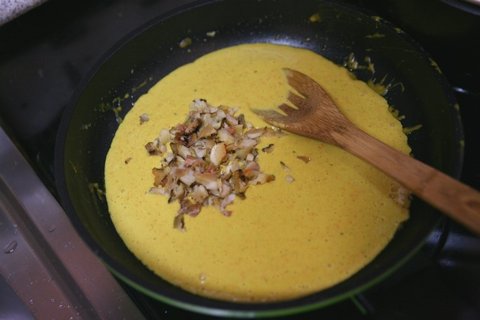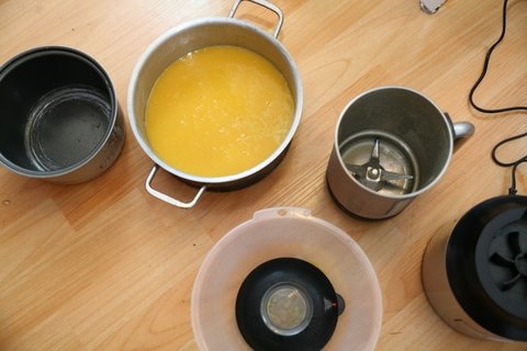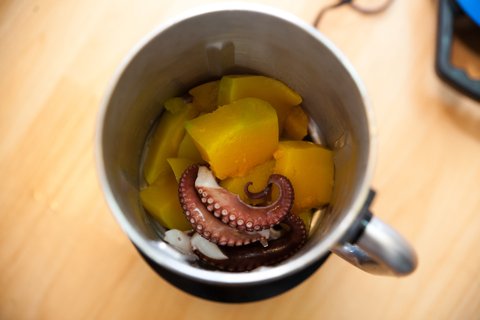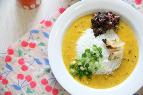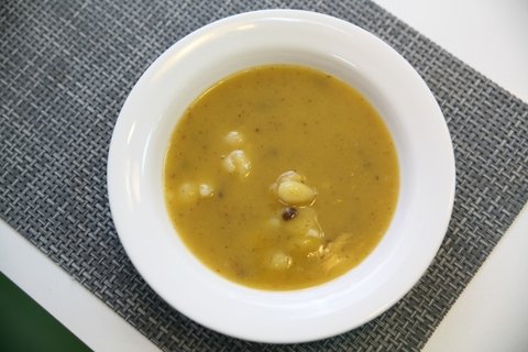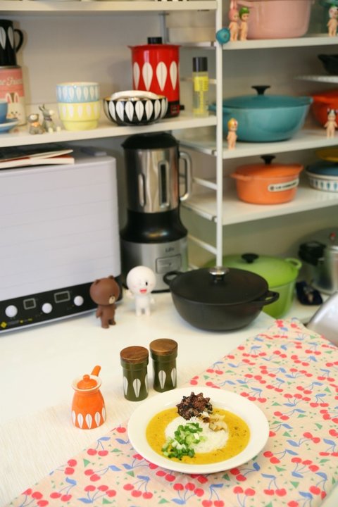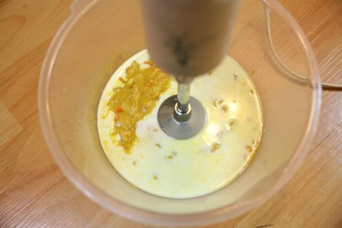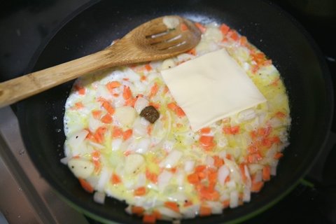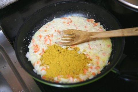 양파당근마늘 버터와 식용유에 볶아주다가 우유 치킨스톡 통후추 그라인드해서 넣어주고..카레도 넣어줍니다. 그리고 좀 식혀서 핸드믹서기로 갈아주고..다시 후라이팬에 뿔소라 다진거 넣고 볶아주고 마무리~