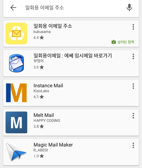 1)앱스111토어 들가서 일회용 이메일 생성 을 치셈