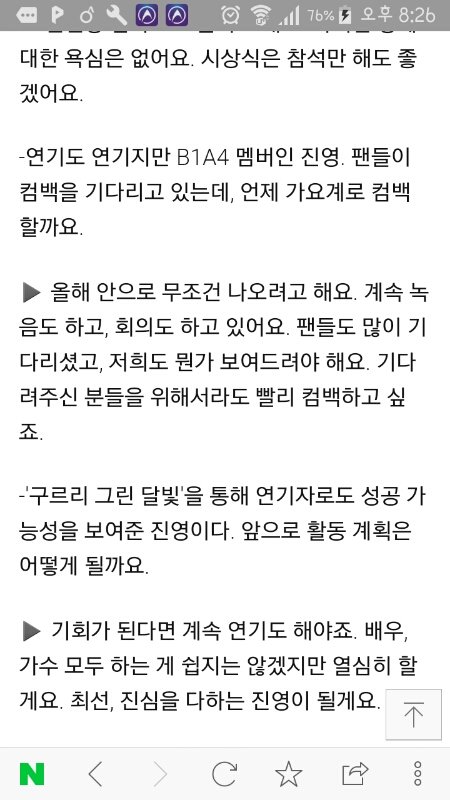 진영이가 직접 인터뷰에서 말한거에요 ㅠㅠㅠㅠ올해안에 컴백한데요 ㅠㅠㅠㅠㅠㅠㅠㅠ