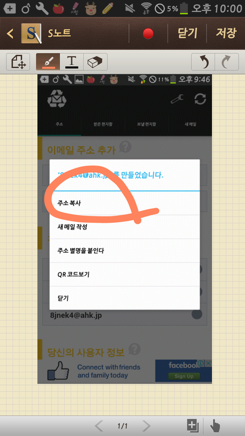동그라미 친 것 누르면 이메일을 새로 만들어줘