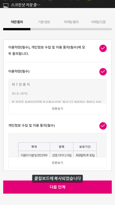전체 동의 누른다음에