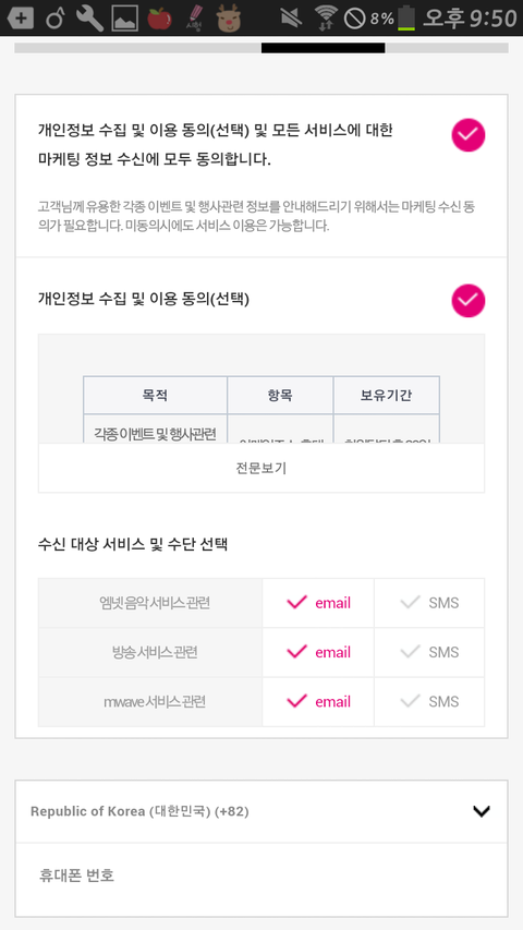 다 동의누른다음에 핸드폰 번호는 안했으니까