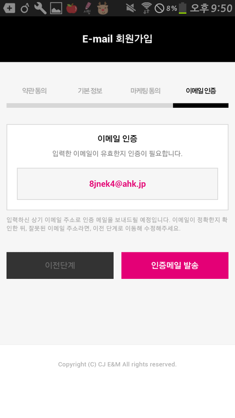 확인 누른다음에 인증메일 전송 누르면