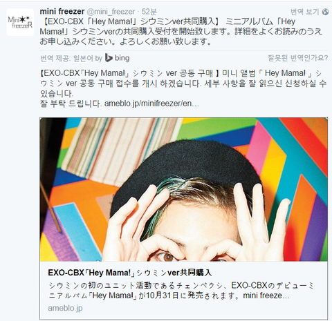 일본팬분들이 첸백시앨범 공구하시나봐(시우민)