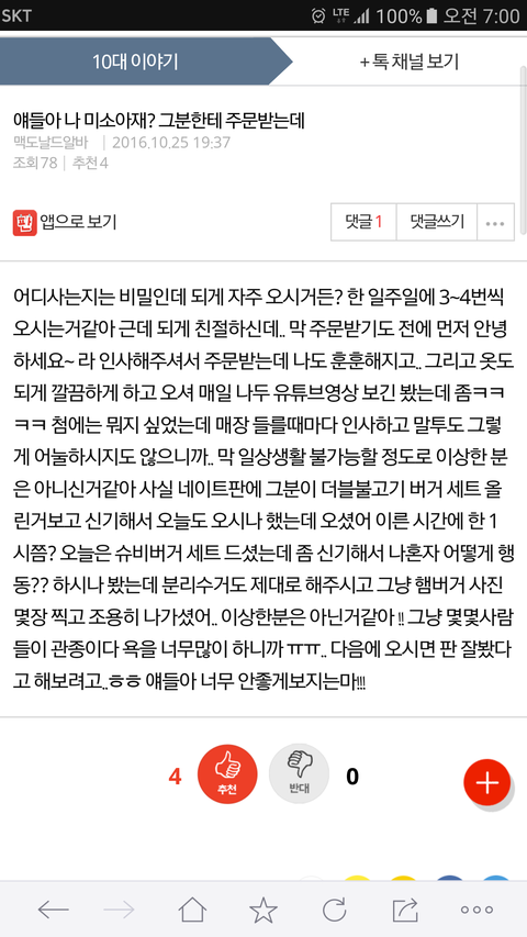맥도날드 알바하는분이 실제로 미소아재 만났음