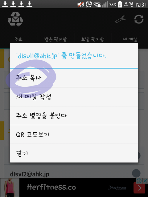 주소복사 한번만하면 나중에 m넷앱에 이메일 붙여넣기할때 숫자만바꾸면돼 무지무지편함