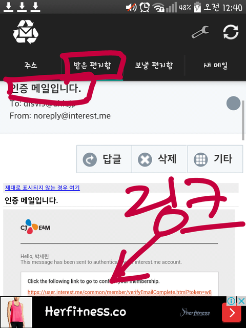 하아아아안참후에 이메일앱에(지금타가수분들도 이렇게많이들할테니 서버오류심한듯ㅠㅠ새벽에빠른거보니새벽에많이만들어ㅎㅎ) 사진처럼 링크누르면 가입완료