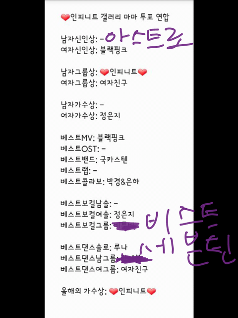 우리가 짹참고해서 바꾼 ''''베스트보컬,베스트댄스남'''이부분은 꼭가려서올려줘(이부분은 판인증)