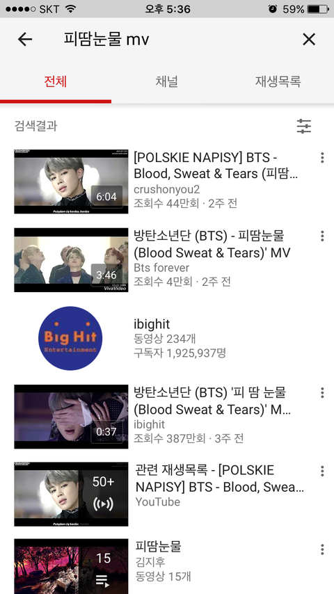 이거 일수도 있어 피땀눈물 검색하면 저거 제일 먼저 뜨거든? 그냥 비공식 페이지에서 올린건데 조회수 40만이나 돼 .. 끝에 mv라고 쳐도 처음으로 안나와 ㅠㅠ 머글들이나 모르는 팬들은 충분히 저런거에서 뮤비 볼수 있을 가능성 많아 ㅠㅠ