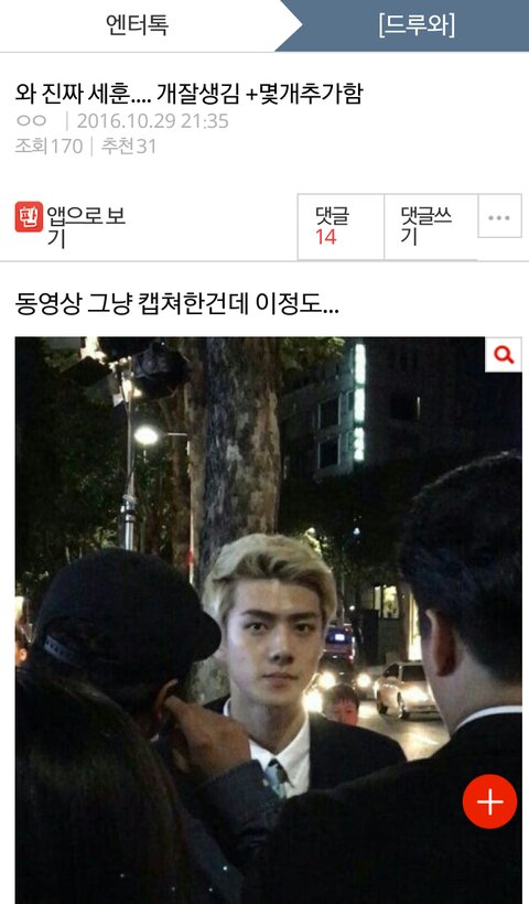ㅇㅌㅌ에 세훈이글 올라왔네
