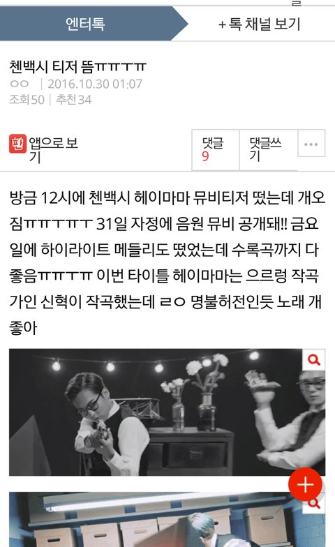 첸백시글 올라옴