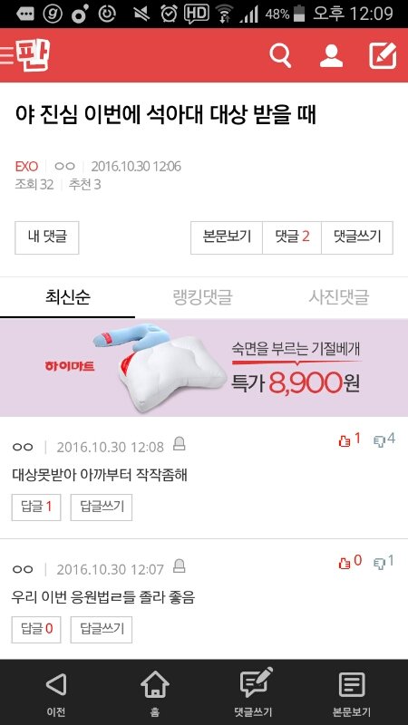 대상 못 받는건 엑톡으로 들어갈게 아니라 다른 톡으로 들어갔어야지 바보야ㅠwㅠ