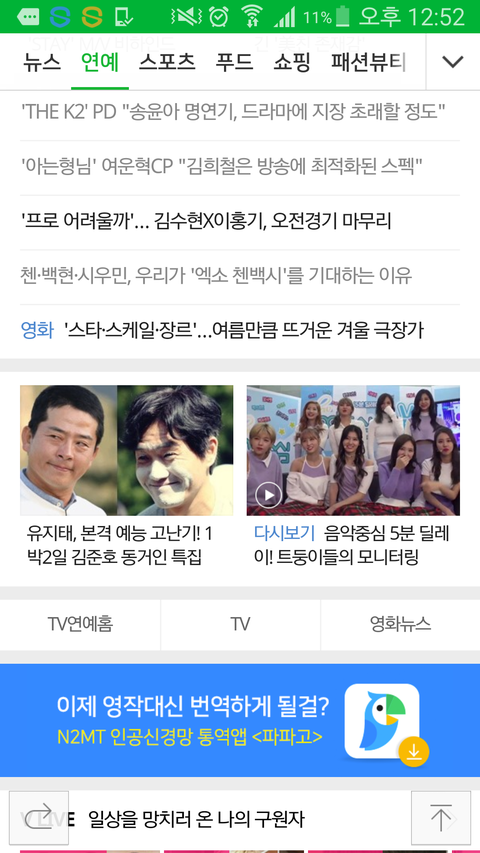 네이버 메인 첸백시 기사