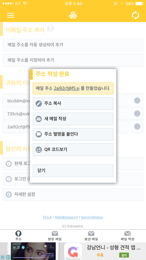 메일주소도 무한생성이 가능하구요 파기되지 않는점, 비번 필요없는점, 어플 하나에서 전부 모아볼수있는점을 다 갖춘 꿀어플이에요!!!