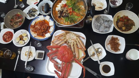 이마트에서 대게 행사할때 시부모님 오시라하셔서 두마리 찌고 해물땅 끓였어요ㅋ꼭 배딱지가 위로 올라오게 두고 청주 조금 넣어 끓는물에 25분 ? 정도 찌고 뚜껑덮어 10분 뜸들이면 부드럽게 익어요ㅎㅎ