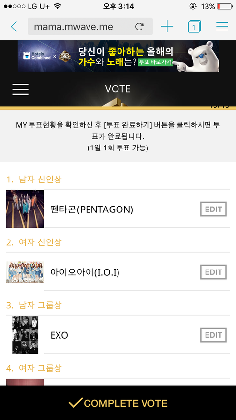 좀아까 아이디파서 17번정도 투표햇는데 전부다 엑소찍었어요 인증하나하나 다캡쳐못해서 한장만두고가요